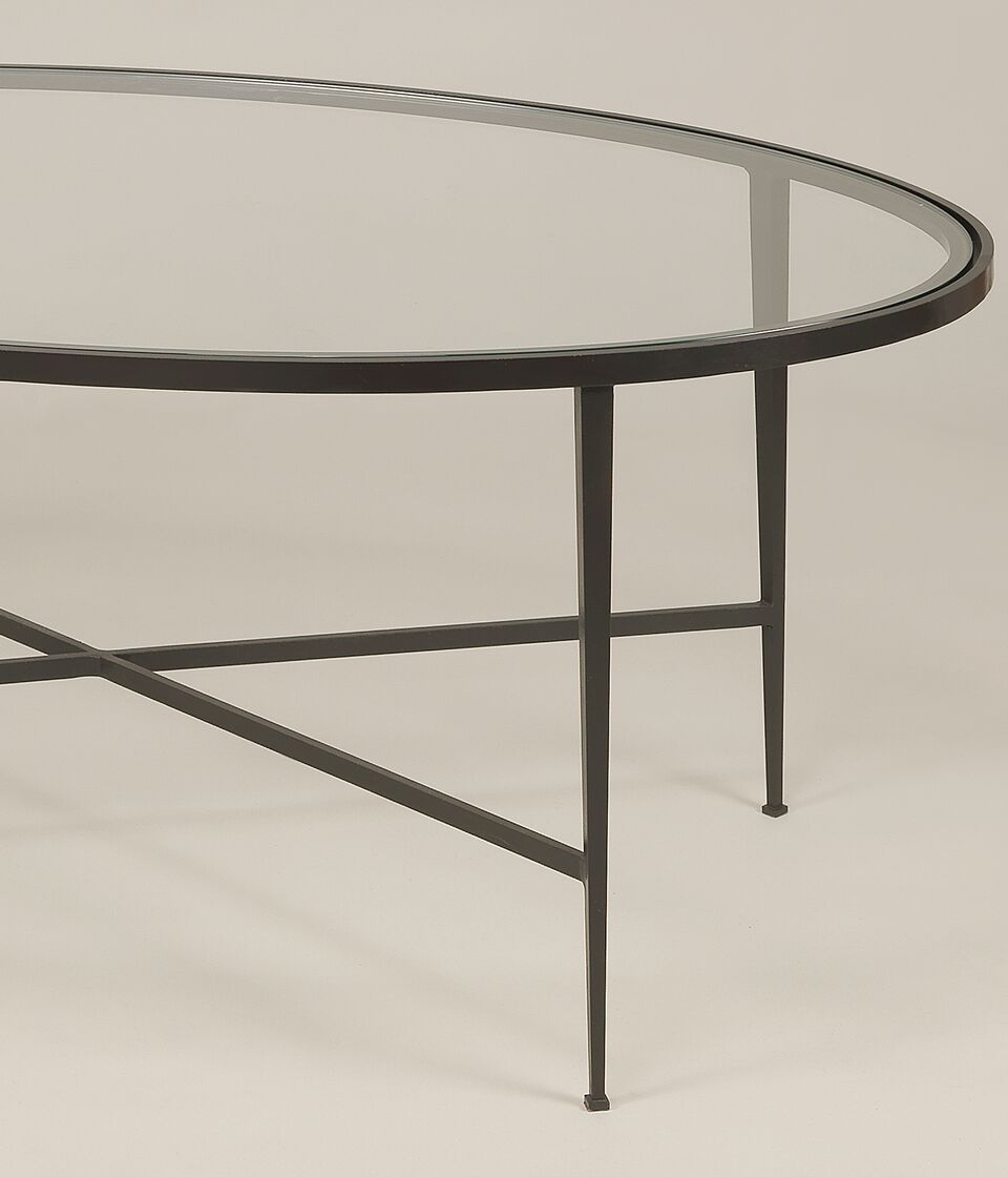 Det hÀr ovala bordet designades först för en privat svensk kund, innan vi lade till det i vÄr samling. Den bronsfÀrgade finishen kompletterar den ovala glasskivan.