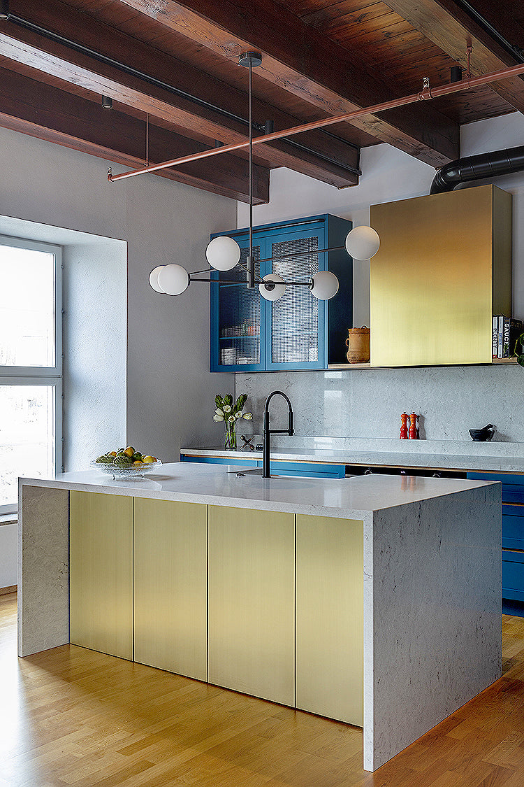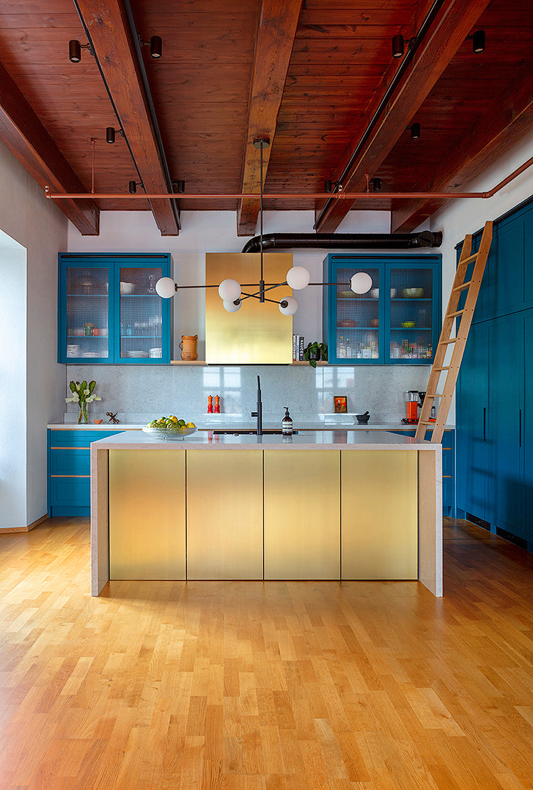 Rummet utstrÄlar glÀdje och lekfullhet med en sofistikerad, industriell touch. Resultatet Àr ett modigt kök genomsyrat av karaktÀr och personlighet.